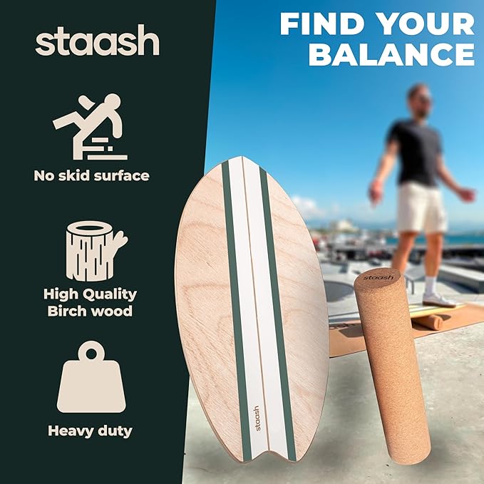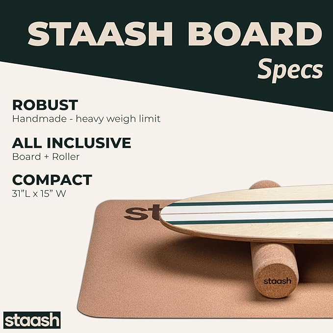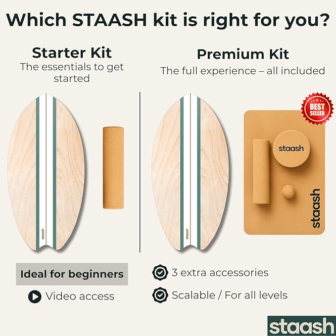 STAASH® Balance Board – Starter (Board + Roller) or Full Kit (w/Mat, Ball & Disc) – Core Balance Trainer for Fitness, Rehab, Surf – Free Coaching Videos