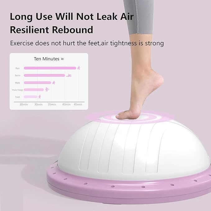 Half Balance Ball Trainer - Balance Ball Trainer with Resistance Bands and Foot Pump,Stability Ball for Exercise, Full-Body Workouts, Home Gym pink