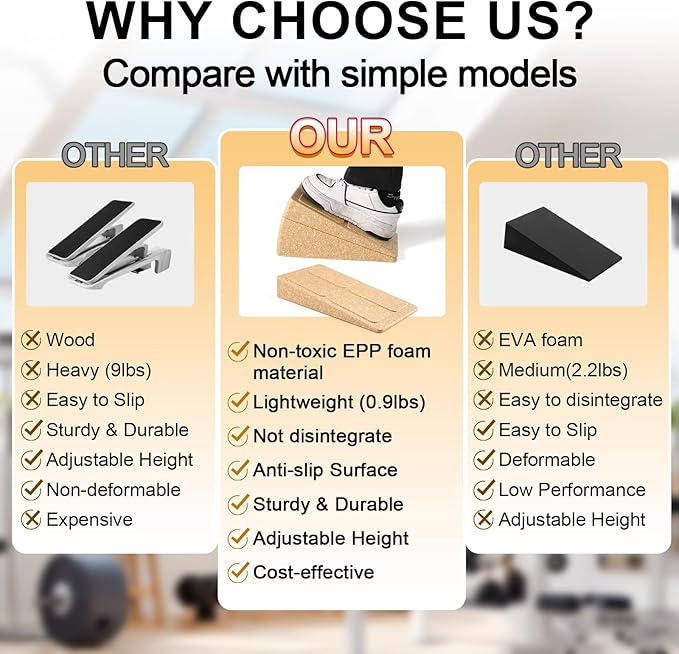 - ※ PORTABLE & EASY TO CLEAN DESIGN : Our Calf Stretcher has a foldable design that is lightweight and easy to carry. They can be used in any combination as well as individually and are extremely lightweight for portability. It's stain-resistant and quickly regains its shine just by wiping with a cloth and rinsing with water. Work out your legs and feet with this squat wedges for runners and fitness enthusiasts, it's perfect for squats and will boost your workouts