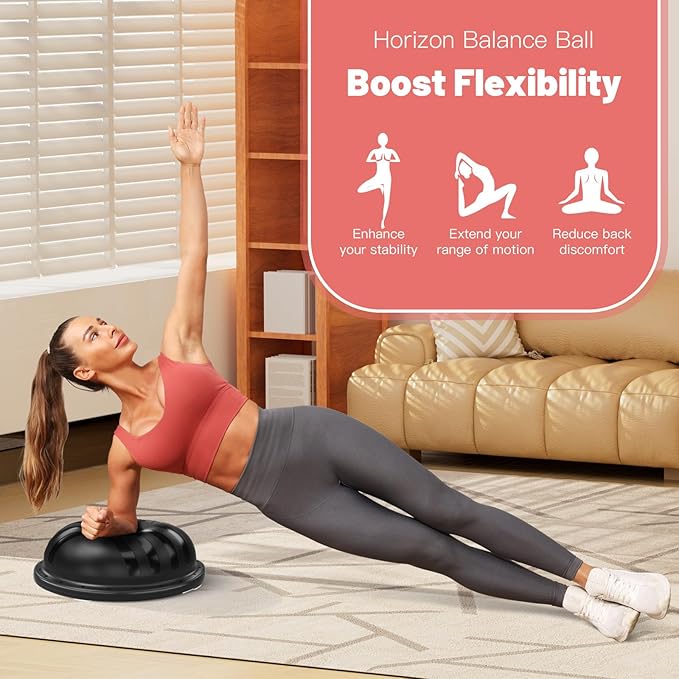 - 【 Comprehensive Exercise Set 】This multifunctional exercise half ball with exercise ball base is a balance, strength, and muscle trainer all-in-one. It can be used by anyone at any fitness level, and focuses on improving agility and balance, perfect for intense core training, improving mobility/stability, high-intensity cardio training, improving mobility, yoga & pilates training, and can even be used for rehabilitation and physical therapy.