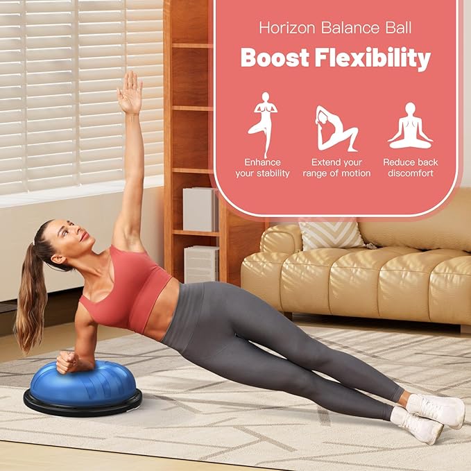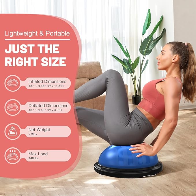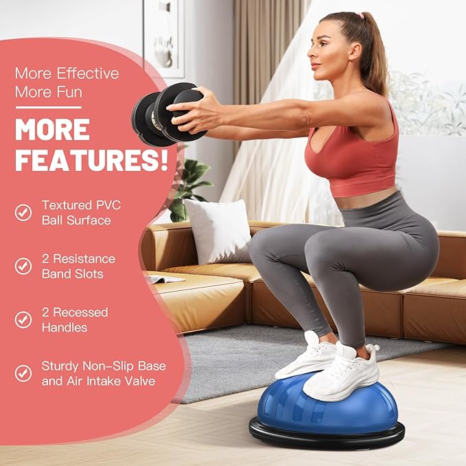 - 【 Comprehensive Exercise Set 】This multifunctional exercise half ball with exercise ball base is a balance, strength, and muscle trainer all-in-one. It can be used by anyone at any fitness level, and focuses on improving agility and balance, perfect for intense core training, improving mobility/stability, high-intensity cardio training, improving mobility, yoga & pilates training, and can even be used for rehabilitation and physical therapy.