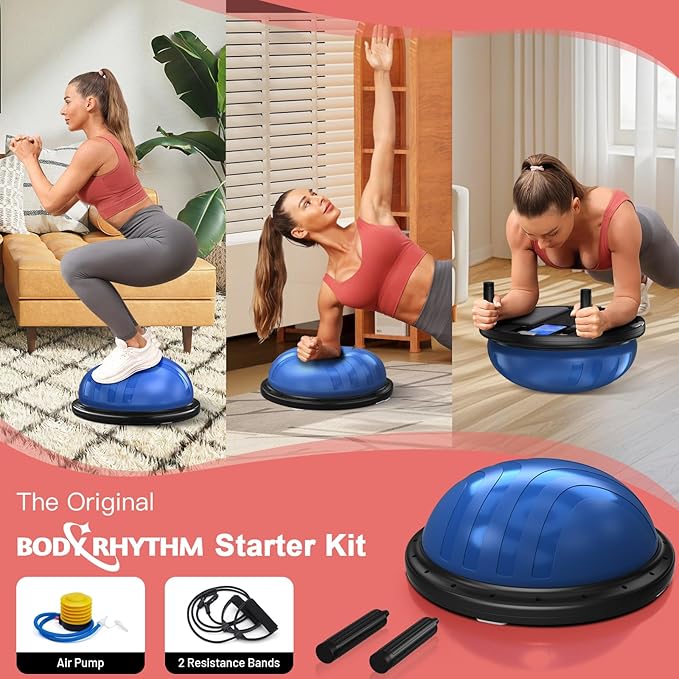 - 【 Innovative 2 IN 1 Design 】The BODYRHYTHM half exercise ball incorporates an innovative two-in-one design, allowing you to freely switch between half exercise ball and plank board Trainer to meet diverse workout needs. It is the perfect balance exercise equipment for beginners, strength trainers, intermediates, and advanced athletes.