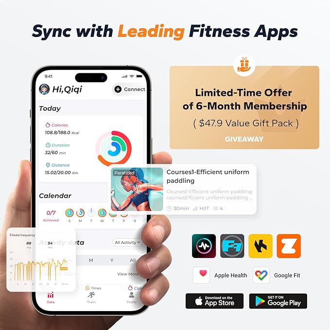 - Real-time Fitness Tracking: The exercise bikes for home connects with the self-developed MERACH APP and FantomFite gaming app. Monitor key workout stats in real time, including resistance level, distance, time, calories, and BPM. Easily sync your data with Google Fit and Apple Health for a more complete fitness overview