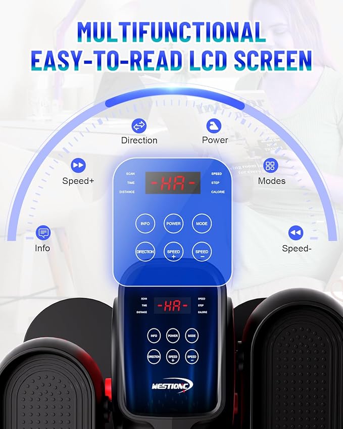 - 【HR & Auto Mode】Exercise anytime, anywhere. In HR(Manual) mode, you can adjust workout time(15-30min), speed(1-10) and direction (forward&reverse) by remote control or button of the elliptical machine. Then switch "mode" to Auto mode that the speed and direction have been programmed. In auto mode, you can adjust P1-P10 mode by press mode button, the speed of the mini seated elliptical changes every minute, and the direction changes every 3 minutes