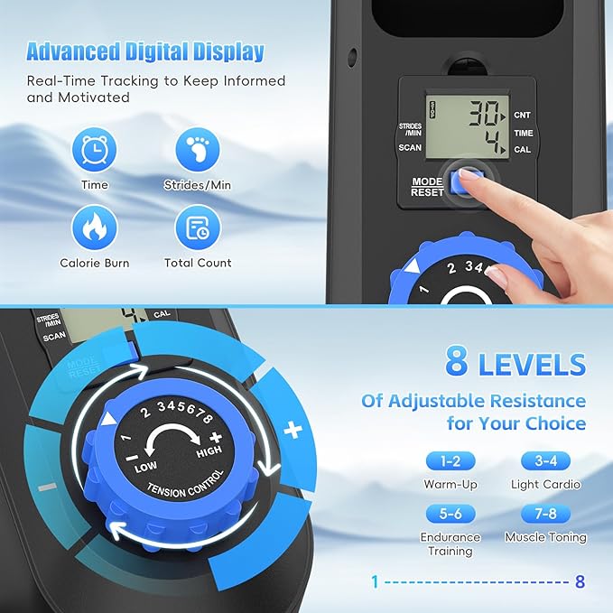 - Clear Display for Real-Time Workout Tracking: Our ellipse leg exerciser as seen on tv that it features a built-in high-definition display that tracks and shows your workout data in real-time. Time, strides/min, calories burned, and total count are clearly displayed, helping you better monitor and adjust your exercise plan for optimal fitness results