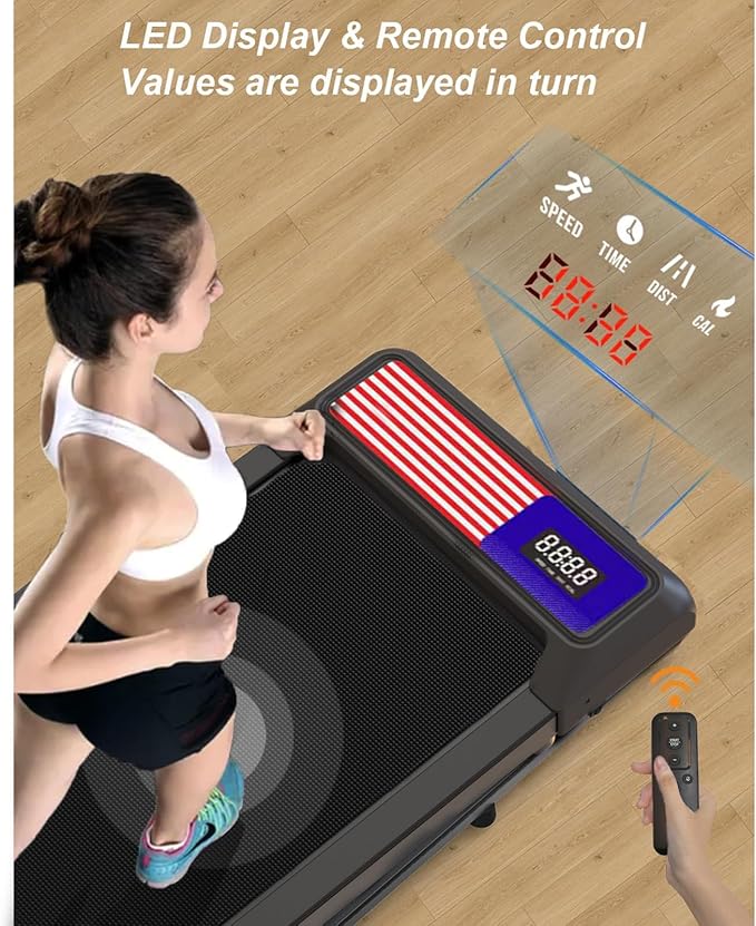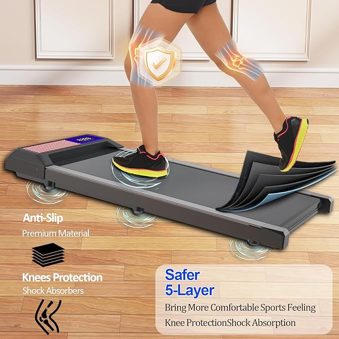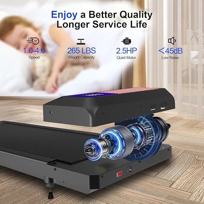 - 2.5HP Quiet Motor & 5% Adjustable Incline:The under desk treadmill features a powerful 2.5HP motor, handling up to 265 lbs while running quietly. The 5% incline adds resistance, increasing calorie burn and intensifying workouts.