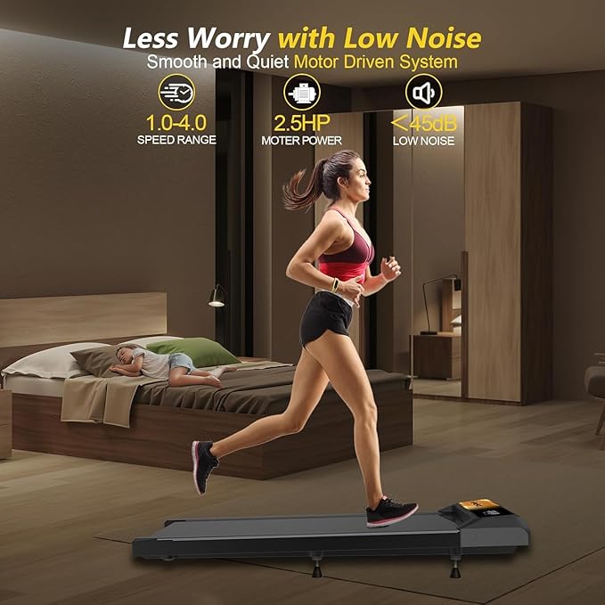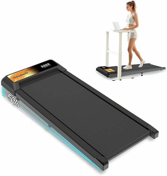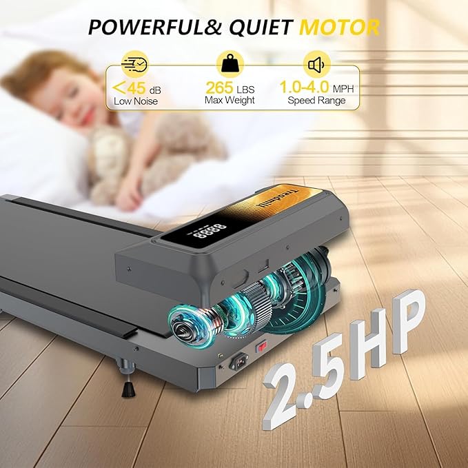 - Incline + Power for More Burn, Less Time Thanks to its 2.5HP quiet motor and built-in 5% incline, this under desk treadmill lets you burn more calories in less time—up to 30% more than flat treadmills. Whether it’s a quick lunch-break walk or after-dinner stroll, you’ll feel the difference.