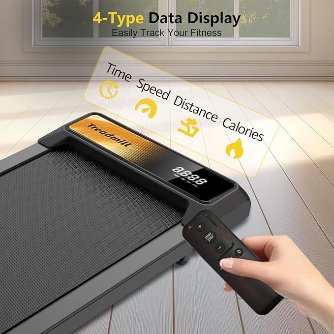 - Real-Time Progress at a Glance The built-in LED screen gives you live feedback on time, steps, distance, speed, and calories. With the included remote, you can start, stop, or adjust your pace anytime—no bending over required.