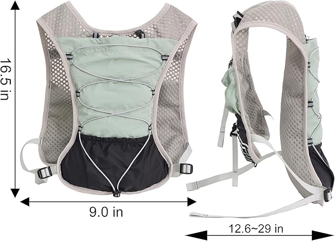 - Customizable Fit for All-Day Comfort Water Backpack: Adjustable chest straps and side compression cords ensure a secure, bounce-free fit for all body types. Adjustable from 12.6” to 29”on shoulder straps. No chafing, just ergonomic support and fit