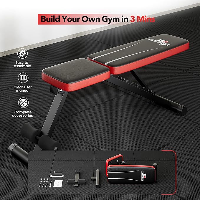 - Great Choice for Home Gym: NICEPEOPLE Basic weight bench is an ideal pick for beginners with complete features; Easy to assemble and is compact to transform every corner into your home gym; Contact us to get an extra training guide and start bench workout