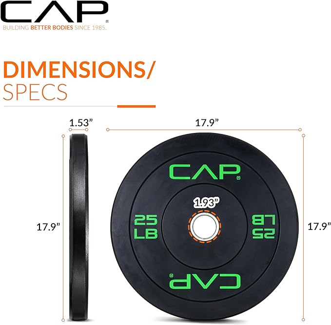 - WHAT’S INCLUDED – TWO 25-pound Budget bumper weight plates in black; Designed to accommodate Olympic barbells (with 2-inch center hole)