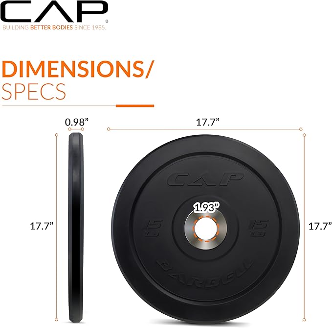 - WHAT’S INCLUDED – TWO 15-pound Best bumper weight plates in black; Designed to accommodate Olympic barbells (with 2-inch center hole)
