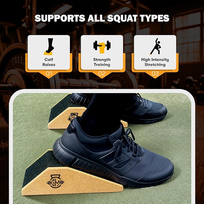 - Perfect Workout Accessory: This cork squat wedge block is designed for deeper squats, heel elevated squats, calf raises, deadlifts, weight lifting, calf stretcher, yoga wedge, and great for stretching and balance workouts. Enhance your fitness routine by improving squat form & avoiding muscle strain and knee injuries during squat training