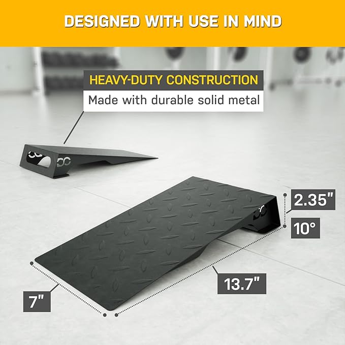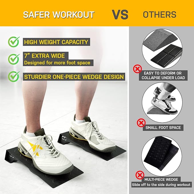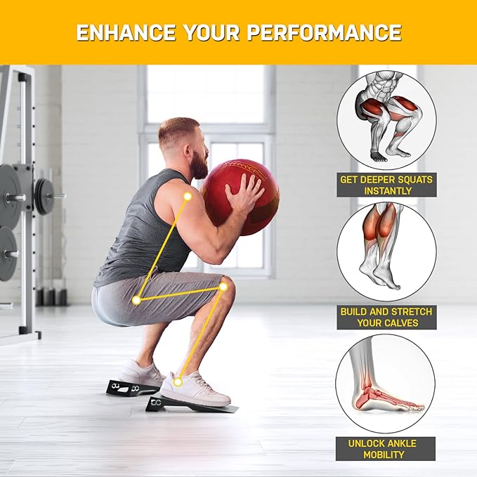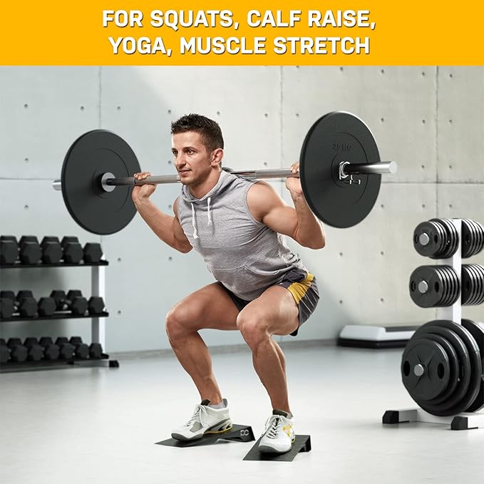 • [Versatile Fitness Use] Not only can help improve your squats and calf raises but this squat wedge for weight lifting can also be used for a wide range of exercises and fitness purposes, such as yoga stretches, planks, push-ups, or as a calf block
