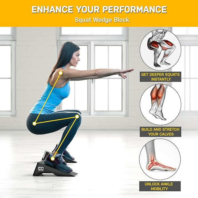 - [ Train Like A Pro ] This squat wedge can instantly help improve squatting and poor mobility by offering excellent support for your ankles, knees, and hips.