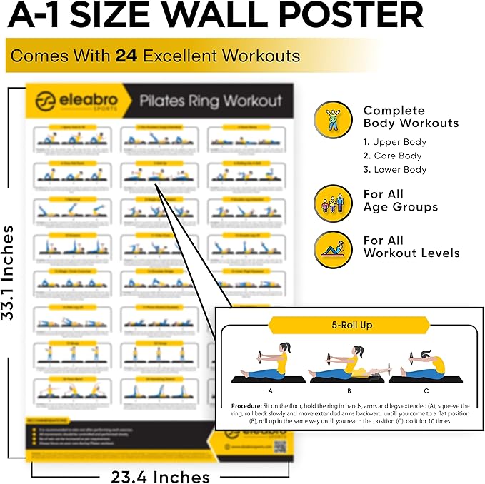 - Bonus Feature: For your convenience, our pilates equipment for home workouts also comes with an A-1-sized exercise guide & carry bag. These 24 workouts are perfect for your daily routine, so you can hang them and start right away with a magic circle