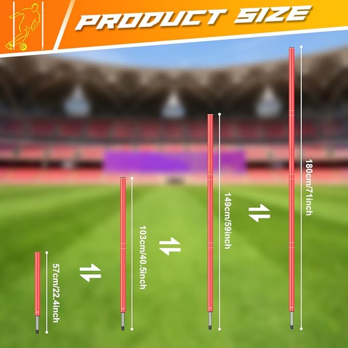- 【Improve Footwork and Coordination】: Athletes can use soccer poles as obstacles to train in various aspects, including dribbling, cutting, and defensive movements. These training poles help soccer players develop and the ability to change direction quickly. Whether for personal, small group, or team training, this set is designed to fulfill all your needs, enabling numerous drills to develop your speed, strength, and accuracy, and reach your potential.