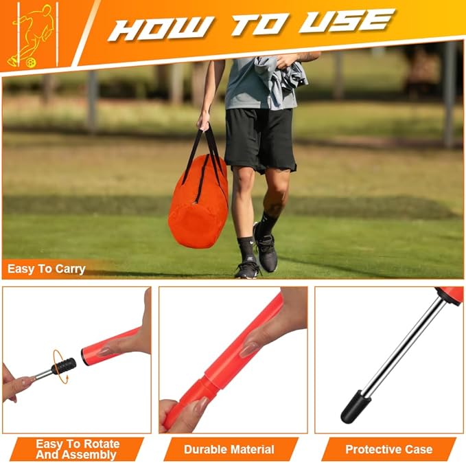 - 【Improve Footwork and Coordination】: Athletes can use soccer poles as obstacles to train in various aspects, including dribbling, cutting, and defensive movements. These training poles help soccer players develop and the ability to change direction quickly. Whether for personal, small group, or team training, this set is designed to fulfill all your needs, enabling numerous drills to develop your speed, strength, and accuracy, and reach your potential.