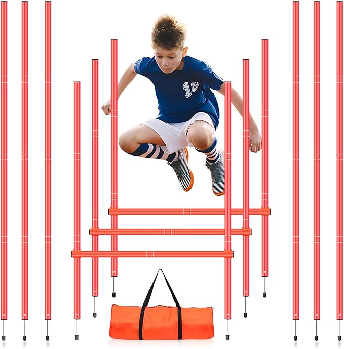- 【Multi-functiona Training Use】: This agility training poles set can be integrated into any fitness program to create custom lower body workouts for all training goals, Ideal as football training equipment, baseball training equipment, basketball training equipment, Track and field training equipment or soccer training equipment. Suitable for various outdoor scenarios: gardens, lawns, land, sandy areas, etc.