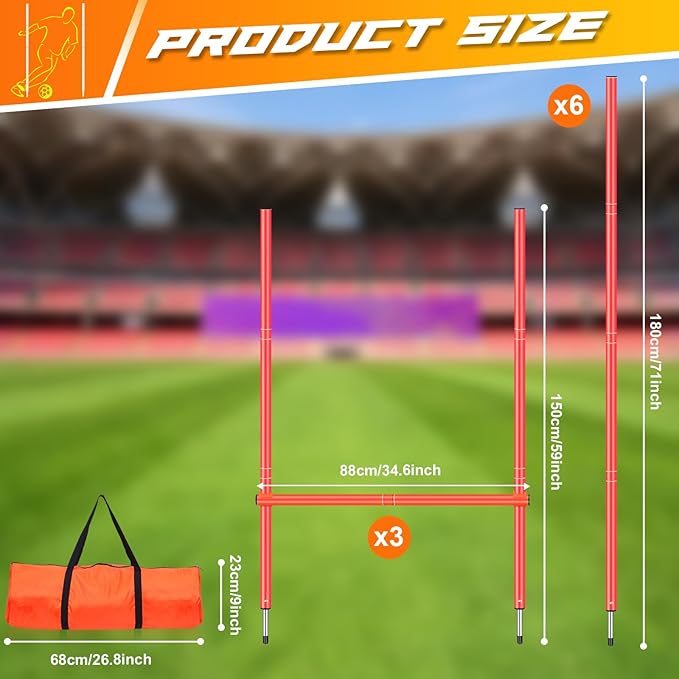 - 【Ideal Soccer Training Equipment】: Including 6 orange football agile bars, 3 horizontal bars, 6 buckles, and 1 handbag, they can be used as agile bars alone or combined into hurdles for use. you can be combined according to your actual needs. football training bars helps cultivate athletes with agility, speed, and coordination.Combined with the jump hurdles, which improve vertical jumping abilities and explosiveness. soccer training equipment helps you enhance your overall athleticism.