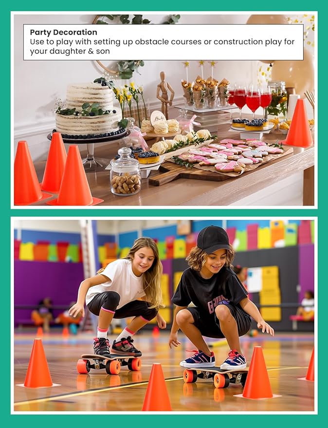- Multipurpose Safety Cones : The football cones set are perfect for a variety of indoor and outdoor training and activities,such as soccer, basketball, rugby, baseball,games at theme parties and festivals,kid's games,roller skating, agility training, bicycle obstacle course, motorcycle training, dog training and more.Ideal choice for marking boundaries, setting up obstacles and decorations