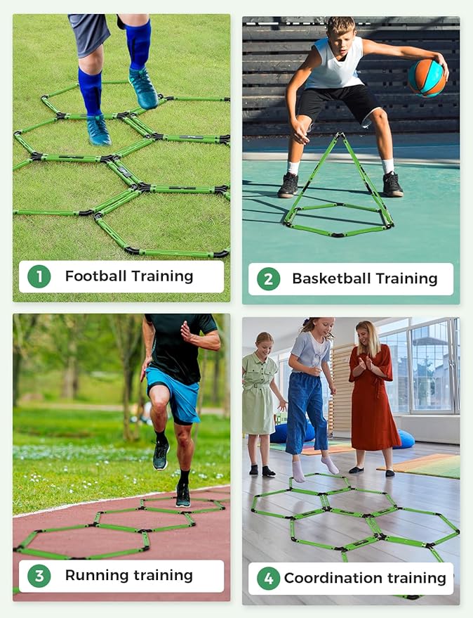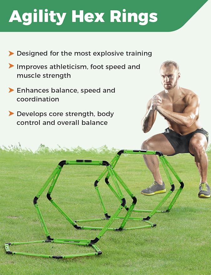 - 5 Set GHB Hexagonal Agility Rings Connector:The connector clips included help you arrange these rings into the order you prefer.Easy to connect,you can change the shape and function of the hexagonal agility ring to meet different speed agility training