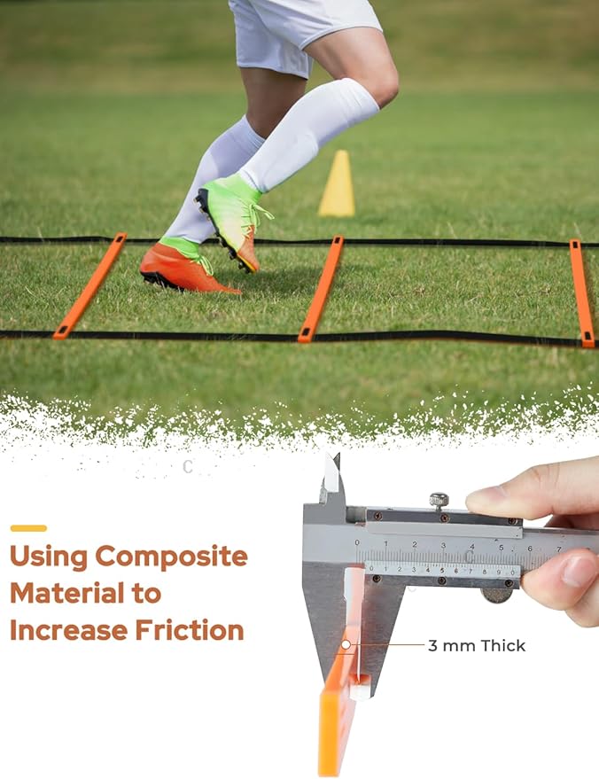 - Adjustable Agility Rung Design: Each rung is 16.5" long, and the space between rungs is adjustable up to 15" inch. You can simple adjust it in the nylon straps so as to meet your workout demands in grass ground or playground