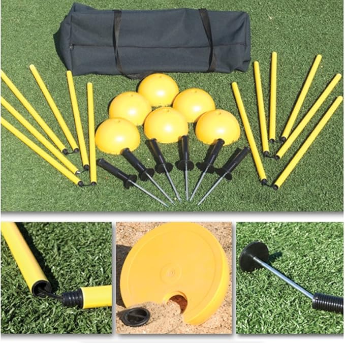 - Two-piece 60 in. PVC poles set up and break down with ease to get practice started quickly
