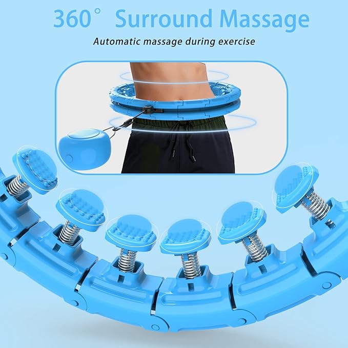 - Easy to use, 2 in 1 fitness massage: Compared with the traditional Exercise hoop, the upgraded smart weighted hoop is easier to use and will not drop, even beginners can use it. When you use a smart weighted Exercise hoop, the 360-degree shock-absorbing massage head will massage your waist to relieve waist pain.