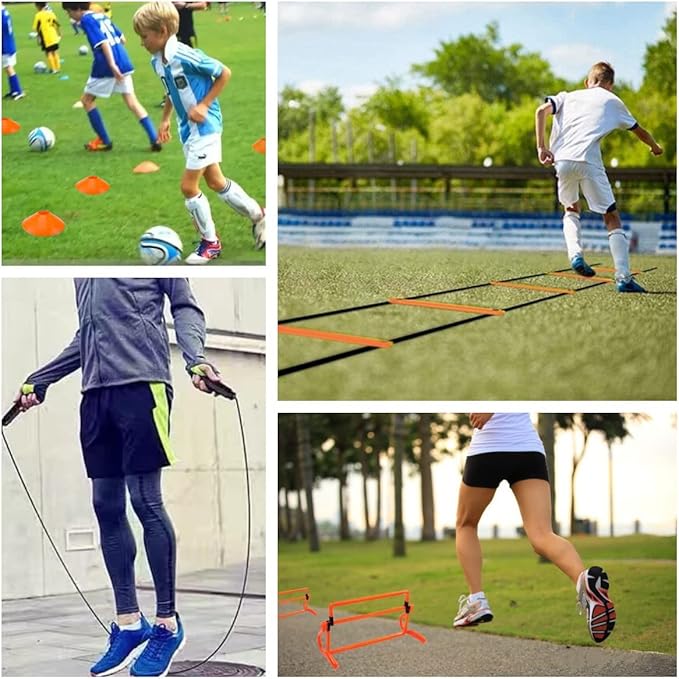 - Suitable for Different Groups of People: Our Agility ladder hurdles for kids create a variety of drills for improving, footwork, balance, and explosiveness. Suitable for coaches, football players, basketball players, soccer players, tennis players, athletes of all sorts and fitness enthusiasts. create a fun obstacle course for kids and adults alike