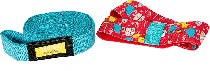 - EASY TO USE: Pack of 2 sensory bands for kids includes a fabric wide squat band with non slip silicone inner grip which easily wrap around the legs for resistance exercises, and a full body loop fabric power band which can be easily attached to desks, chairs and tables