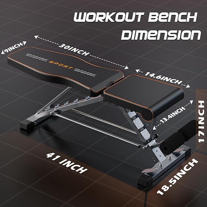 • Super Stable Triangular Structure: The upgraded work out bench design features a more robust triangular structure with a connecting bar in the middle, not only enhancing overall stability but also serving as a practical space-saving area for placing dumbbells.