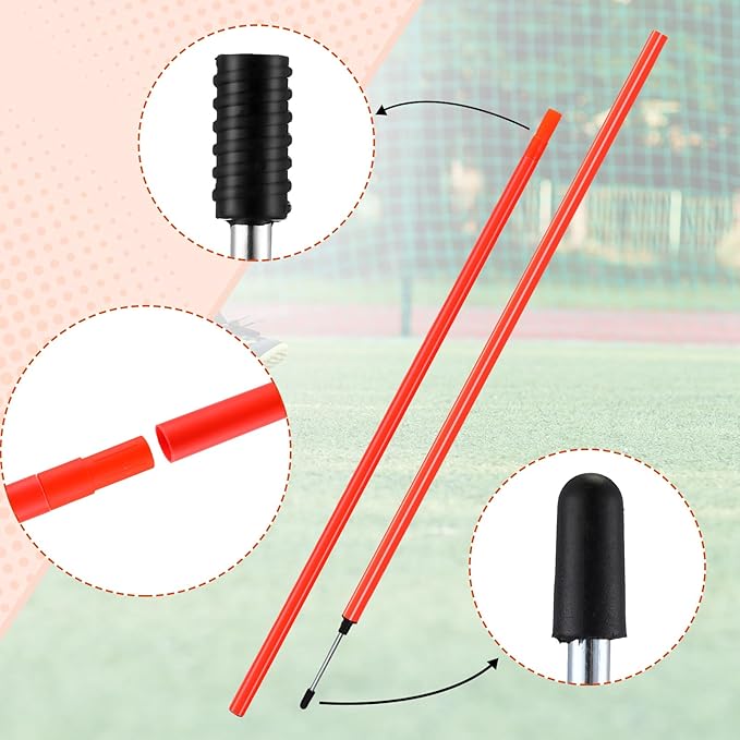 - Inserts Easily into the Ground: the speed training poles are about 70 inches in overall length and 35 inches in half length, while the disc cones are about 7.5 x 2 inches; The poles adopt a 2 section design, which makes them easy to insert into the ground with connectors and floor nails for fixing and erecting; The floor nails are equipped with rubber protective covers to avoid injuries and can be removed during use, making it easy to set up and take down the equipment quickly and efficiently