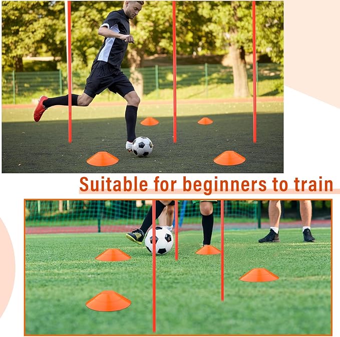 - Ample Quantity: this set includes 12 soccer training poles and 16 agility cones, providing enough equipment for a variety of training drills and exercises; With this set, athletes can create training programs that are tailored to their specific needs; The quantity makes it easy to set up multiple training stations, allowing for efficient use of time during training sessions; Whether you are an advanced athlete or a beginner, this set will help you improve your training goals in the short term