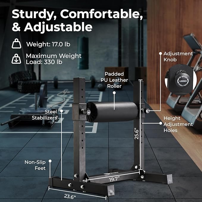 • COMFORTABLE FOR EXTENDED TRAINING SESSIONS - The single leg squat roller features heavy-duty padding that's both resistant to wear and comfortable to use for as long as your fitness session requires. User manual is added for guidance.