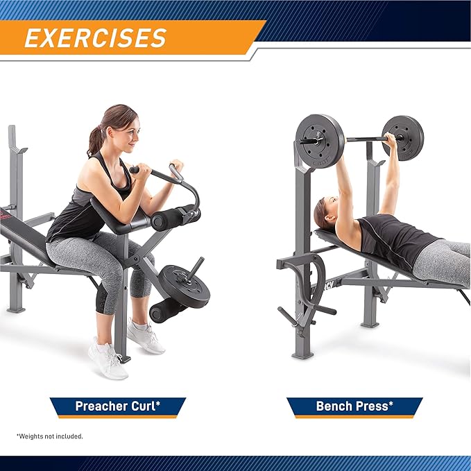 - FREE-WEIGHT RACK – Engage in intense weightlifting or strength-training right in the comforts of your home with the Marcy Weight Bench. It includes a weight rack that fits standard-sized barbells and weight plates for easy accessibility and convenience