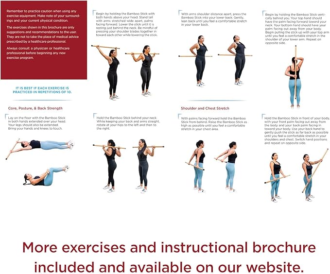 - Durable smooth bamboo with 1.25 inch thickness for easy griping. Improves range of motion by enhancing your stretching and relieving tension and tightness. Lightweight, each stick weighing less than 3 lbs.