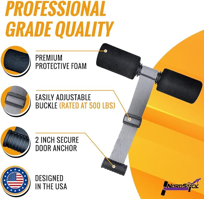 - SAFE AND SECURE: NordStick Pro offers improved durability. The rubberized door anchor is designed to fit any door frame without causing damage or leaving marks, ensuring a safe and secure workout experience with this innovative Nordic stick. Its sturdy construction can handle up to 500lbs of weight, giving you peace of mind during your workouts.