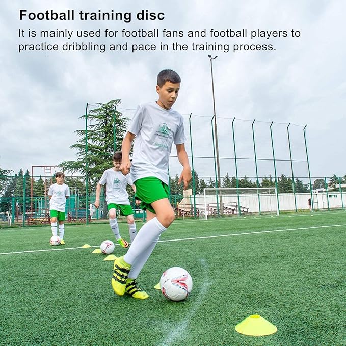 - 【ELASTIC DISC CONES】 Our training set included 12 premium elastic cones, each disc cone measures 7.5’’ in diameter, 2’’ in height. The cones can be placed in a wide variety of patterns. Great as boundary markers, sport practice, and targets. Set up hurdles for youth practice