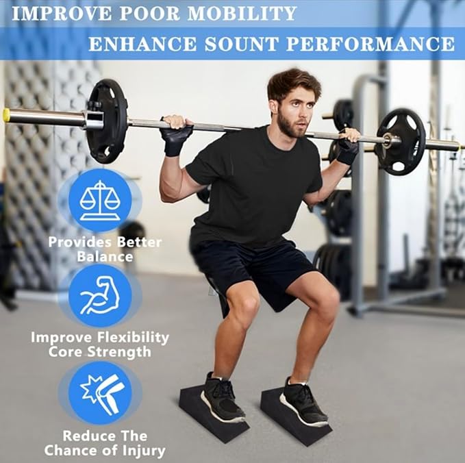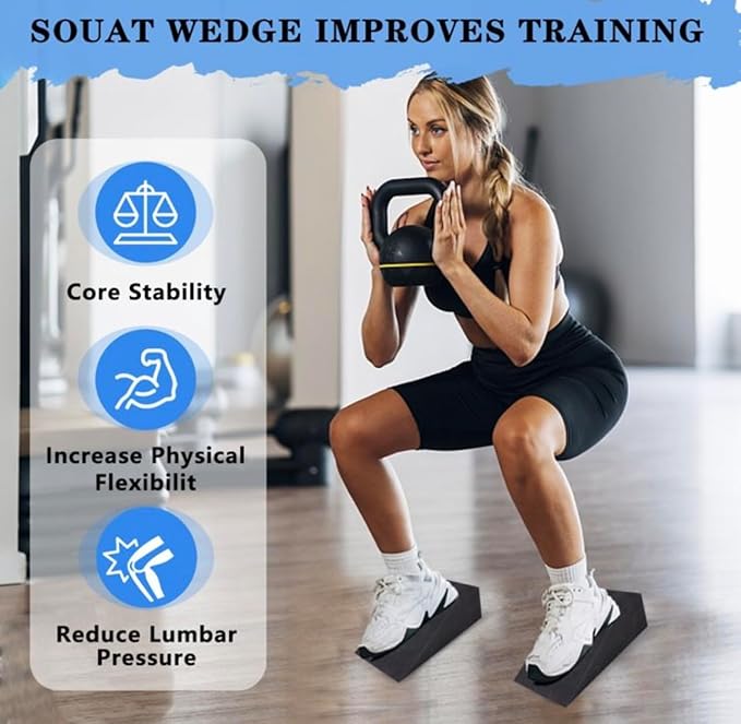 - "Versatile Fitness Tool": While they're perfect for squats, our Squat Wedges aren't just a one-trick pony. They can also be used for lunges, deadlifts, and more, making them a versatile addition to your workout routine.