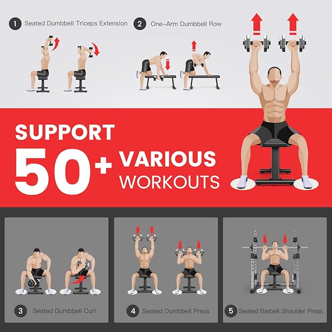 • 【Full-body Fitness Routine】 PASYOU flat workout bench is a highly functional piece of workout equipment that allows for a wide range of fitness routines, including bench presses, dumbbell exercises, and more, all in a compact space. It can also be used in combination with a barbell rack and heavy weights.