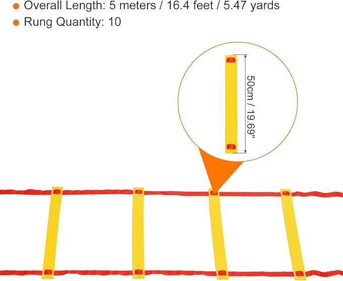 - Rung Quantity: 10; Rung Length: 50cm / 19.69 inch; Overall Length: 5 meters / 16.4 feet / 5.47 yards