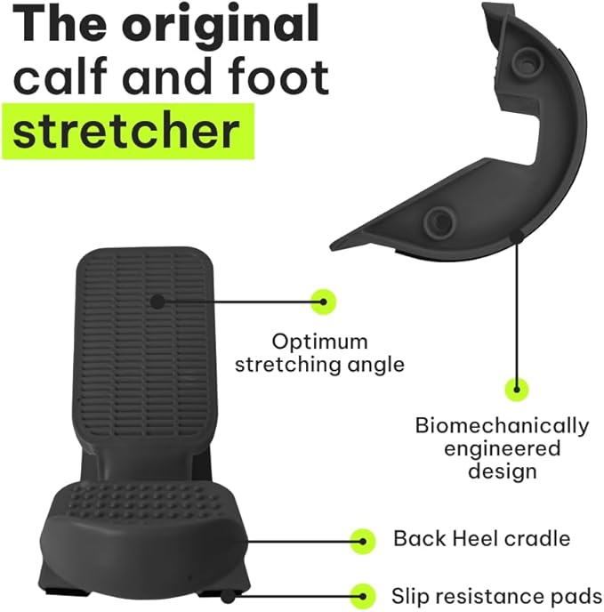 - Angled Foot Plate: The foot stretcher incorporates an angled foot plate to encourage the correct positioning of the foot during stretching exercises. This design helps align the foot in a way that optimizes the stretching motion and targets the intended muscle groups, such as the calf muscles and the plantar fascia.