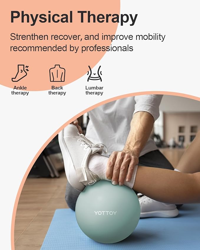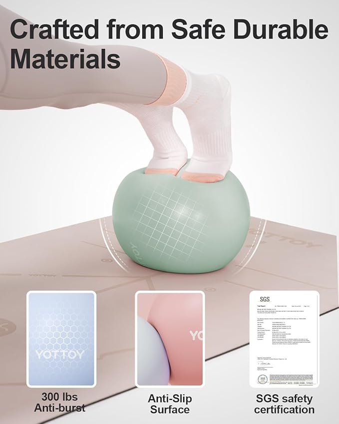 - Anti-slip Surface: The surface of the YOTTOY stability ball is textured and anti-slip, preventing it from sliding or rolling during use. This feature enhances safety and stability, especially when performing exercises on hardwood or tile floors.
