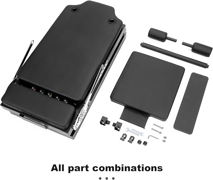 • 【Adjustable】The Pilates core machine features a foot bar with 4 adjustable angles, a silent pulley with 3 height settings, The length of the rope can be adjusted by loosening the rotating wheels under the carriage. This Pilates reformers is suitable for individuals up to 5’8tall.