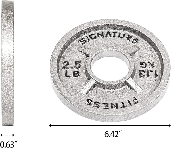 - ✅OLYMPIC STYLE PLATES – Constructed of Solid Cast Iron with a 2-inch machine drilled hole and durable Silver Enamel finish. Simple, classic, and tough enough to endure a rock-solid workout! Note: Each weight plate has a 2-inch center hole diameter that is designed to fit on standard Olympic Barbells.