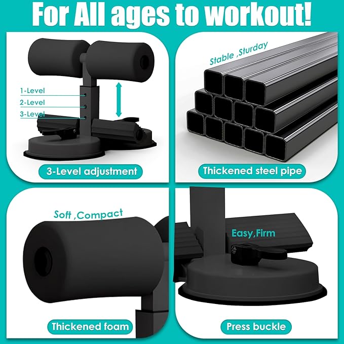 - 3.【3-level adjustment】: A height of 0.78" between each adjustment of the sit up bar. Different adjustment levels allow for customized training intensity based on one's fitness level and goals. Whether beginners or advanced athletes, just easily adjust and then reach to your abdominal muscles training!