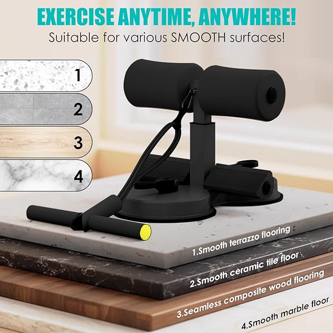 - 5.【Stick to various SMOOTH surfaces】: This is sit up floor holder can stick to seamless composite wood flooring,Smooth terrazzo flooring,Smooth ceramic tile floor,Smooth marble floor! and , only 2.2lblightweight,small and portable easily, so you can take this sit ups foot holder to the gym, use at home or office!Exercise anytime, anywhere!