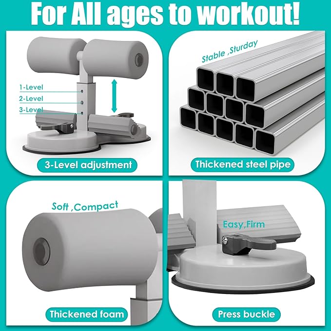 - 3.【3-level adjustment】: A height of 0.78" between each adjustment of the sit up bar. Different adjustment levels allow for customized training intensity based on one's fitness level and goals. Whether beginners or advanced athletes, just easily adjust and then reach to your abdominal muscles training!