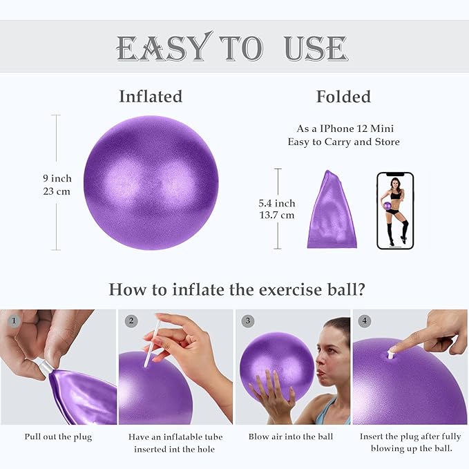 • EASY TO USE - The Balance Ball can be easily infalted with included tube and breath, pump not required. And a folded size as iphone 12 mini makes the ball convenient to carry and store.
